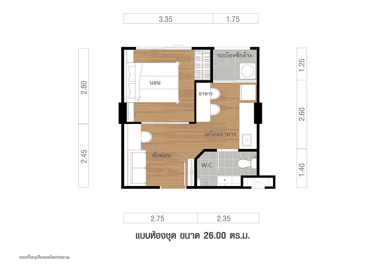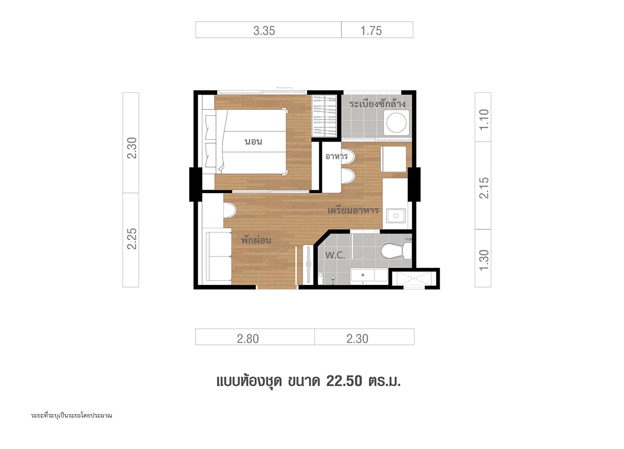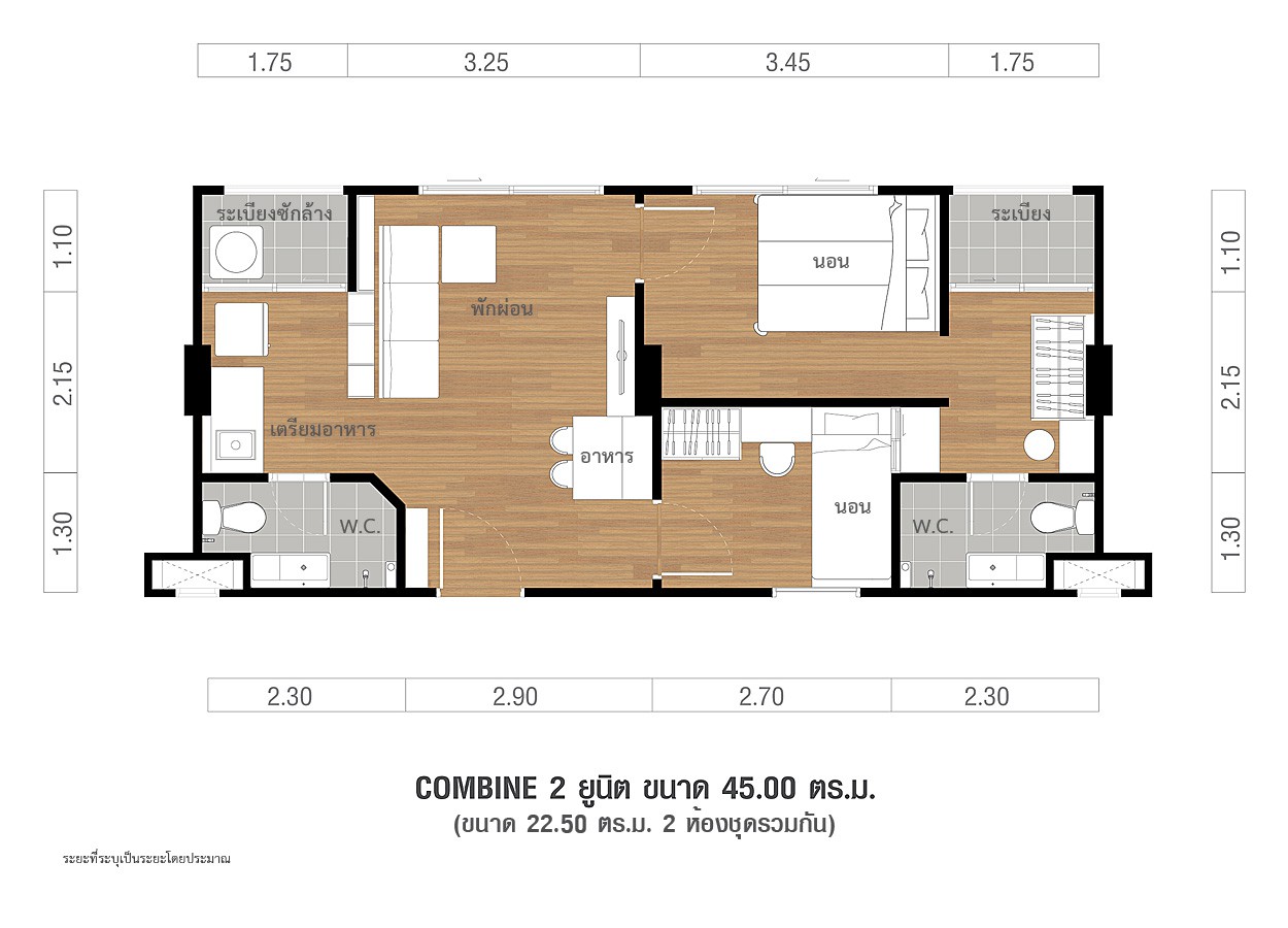 Description: ขนาด 45.00 ตร.ม. (ขนาด 22.50 ตร.ม. 2 ห้องชุดรวมกัน)