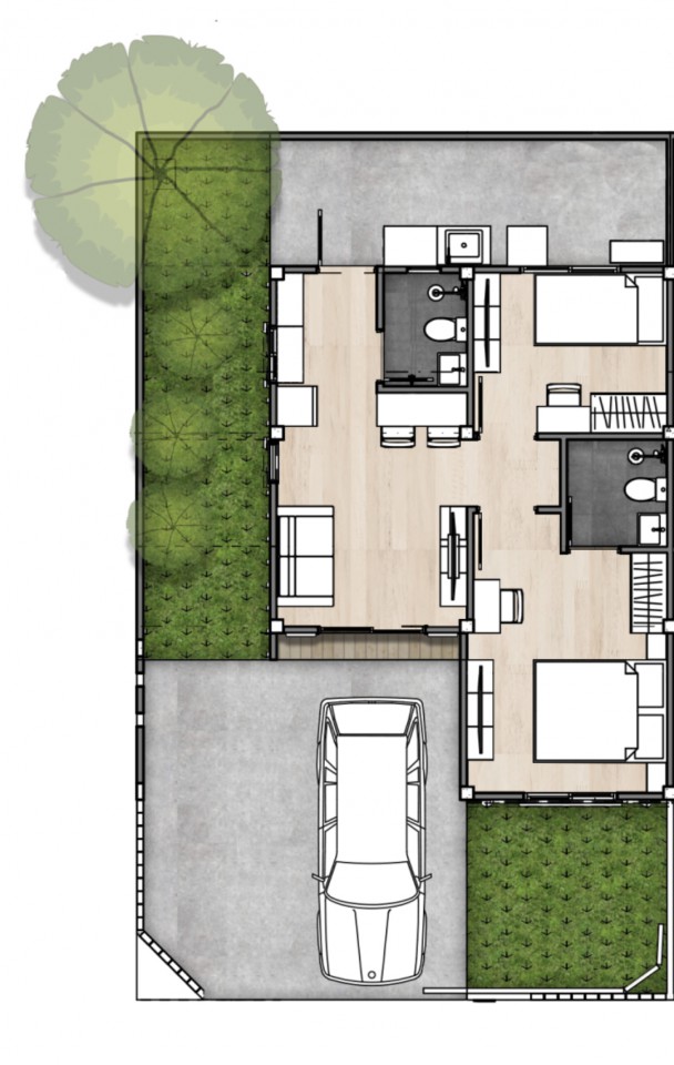 2 ห้องนอน 2 ห้องน้ำ 1 จอดรถ