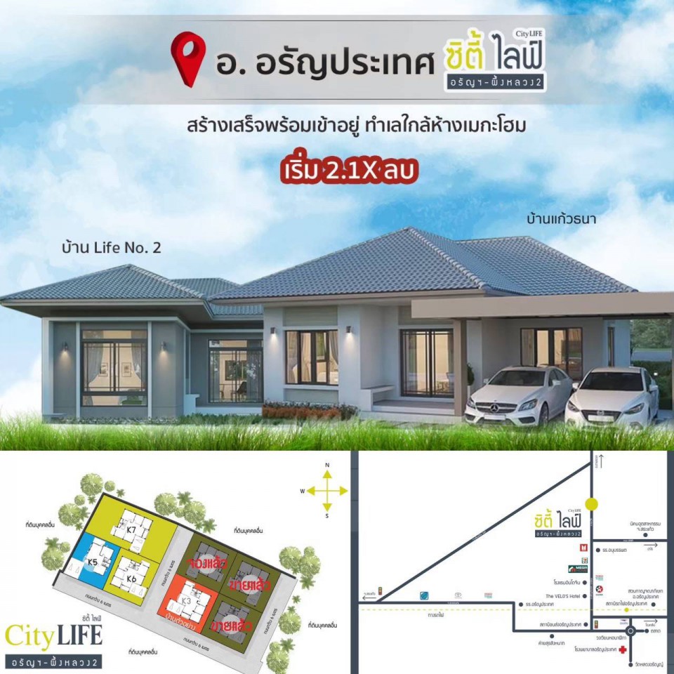 2. ซิตี้ไลฟ์ สระแก้ว-ถ.เลี่ยงเมือง ทำเลใจกลางเมือง ใกล้บิ๊กซี 700 เมตร ไม่มีค่าส่วนกลาง เป็นโครงการแบบเปิด