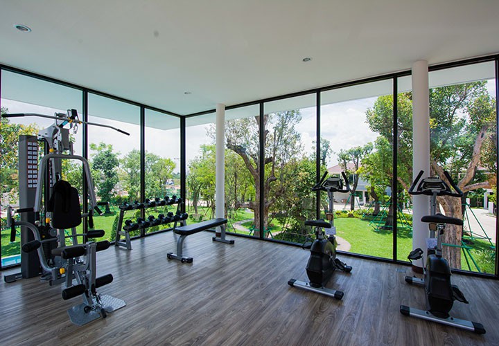 ฟิตเนส ห้องออกกำลังกายอุปกรณ์ครบครัน พร้อมเทควิวธรรมชาติได้เต็มอิ่ม
