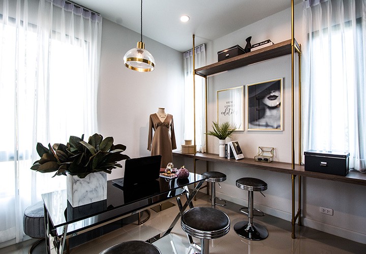 พื้นที่ใช้สอย 243 ตร.ม. ที่ดินเริ่มต้น 55.7 ตร.วา 4 ห้องนอน 3 ห้องน้ำ 1 ห้องรับแขก 1 ห้องพักผ่อน 1 ห้องครัว 1 ห้องอเนกประสงค์ ที่จอดรถ 2 คัน
