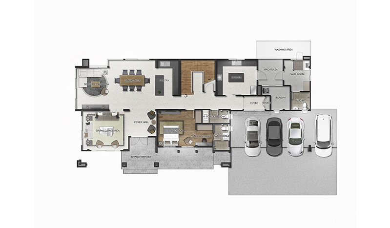 4 ห้องนอน 5 ห้องน้ำ 2ห้องพักผ่อน 1 ห้องแม่บ้าน 4 ที่จอดรถ