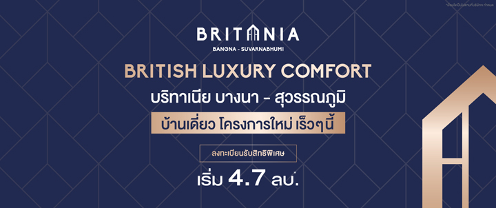 British Luxury Comfort พบกับ บ้านเดี่ยว โครงการใหม่ ใกล้สนามบินสุวรรณภูมิ ลงทะเบียนรับสิทธิพิเศษ เปิดตัว เร็วๆ นี้ เริ่ม 4.7 ลบ.*