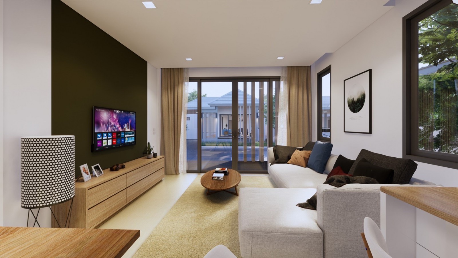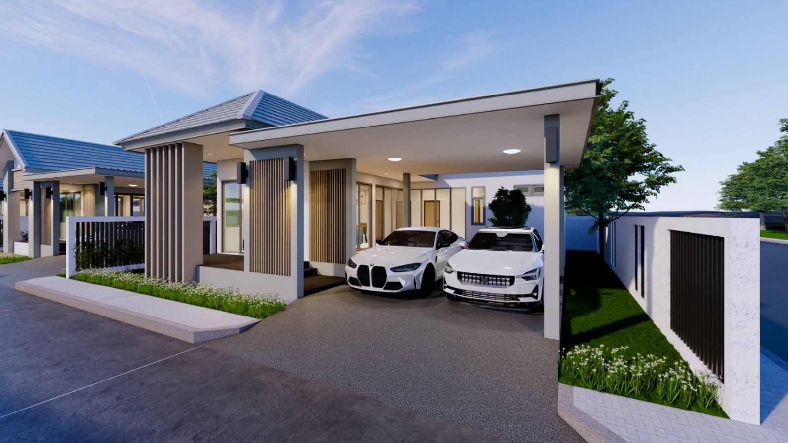 ✔️ บ้านหันหน้าไปทางทิศเหนือและทิศใต้ ภายในตัวบ้านจะเย็นทั้งวัน อากาศถ่ายเท การออกแบบเน้นถึงทิศทางลมแสงแดด และการใช้งานทุกฟังก์ชัน