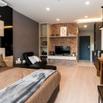 Type A+ Duplex room Duplex room 2 ชั้น เนื้อที่ 65 ตารางเมตร > เฟอร์นิเจอร์บิ้วอินน์ทั้งห้อง ชั้นวางหนังสือ 1. ตู้เก็บของที่วาง TV 2. ตู้เสื้อผ้า 3. เตียง+ฟูก pocket spring 4. ชุดโต๊ะทางอาหาร 5. เครื่องใช้ไฟฟ้าในครัว เตาไฟฟ้า 6. เครื่องดูดควัน , ตู้เย็น 6 คิว 7. ชุดรับแขก , สตูล , TV43" 8. แอร์ Daikin 2 ตัว > สุขภัณฑ์ Ispa 9. เครื่องทำน้ำร้อน Stebel & ก๊อกผสม 10. พัดลมดูดอากาศ