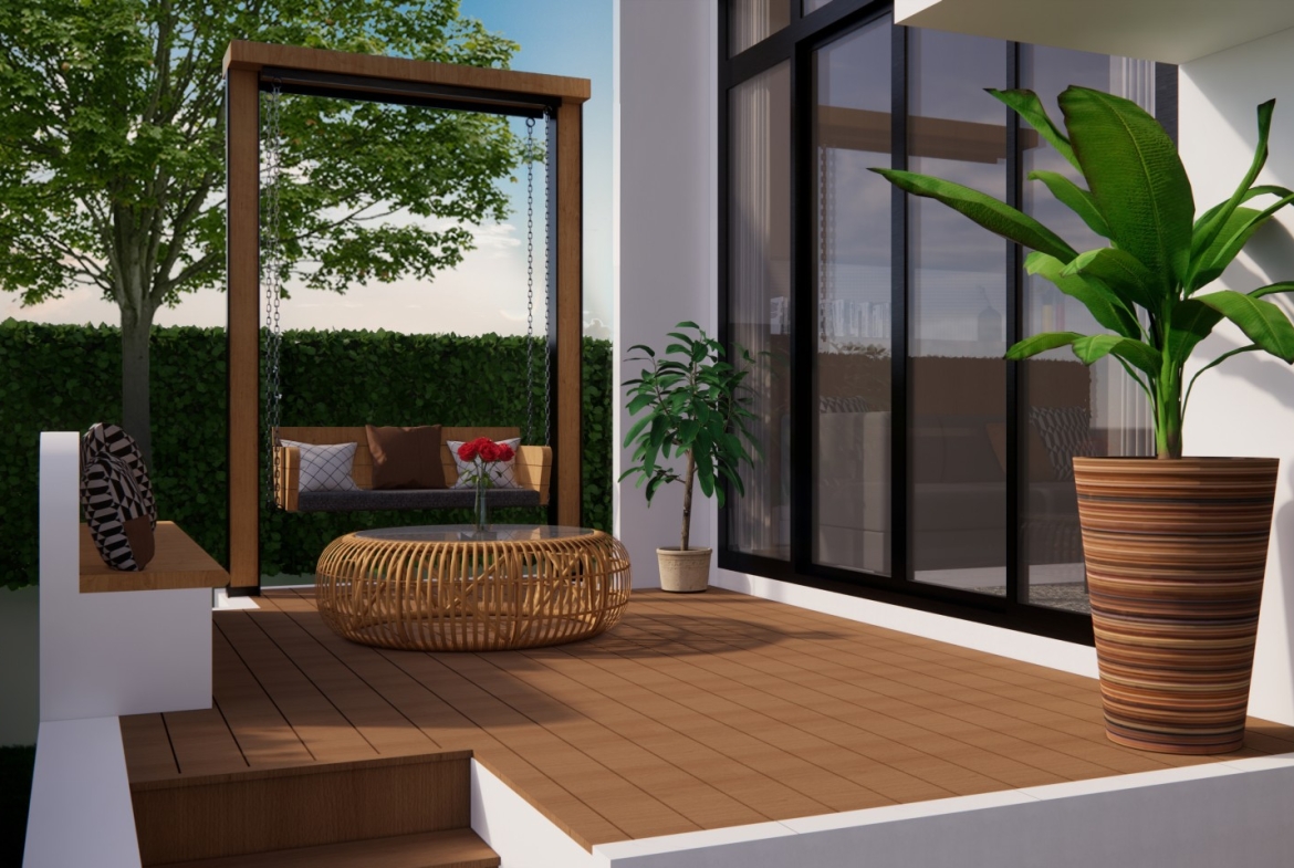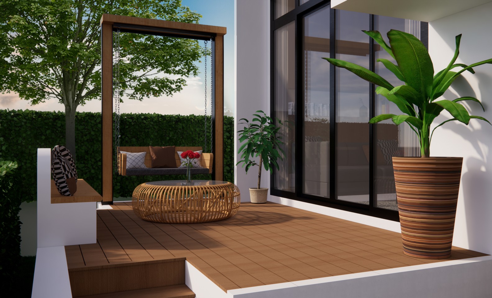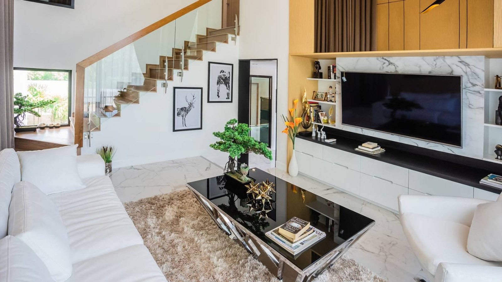 1 ห้องนั่งเล่นเพดานสูง 5.5 เมตร