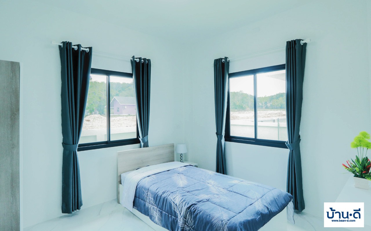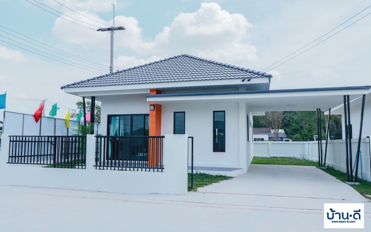 | ประเภทบ้าน | บ้านเดี่ยวชั้นเดียว 2 ห้องนอน 2 ห้องน้ำ 1 ห้องรับแขก ที่จอดรถ 1 คัน เนื้อที่เริ่มต้น 50 ตร.ว. |