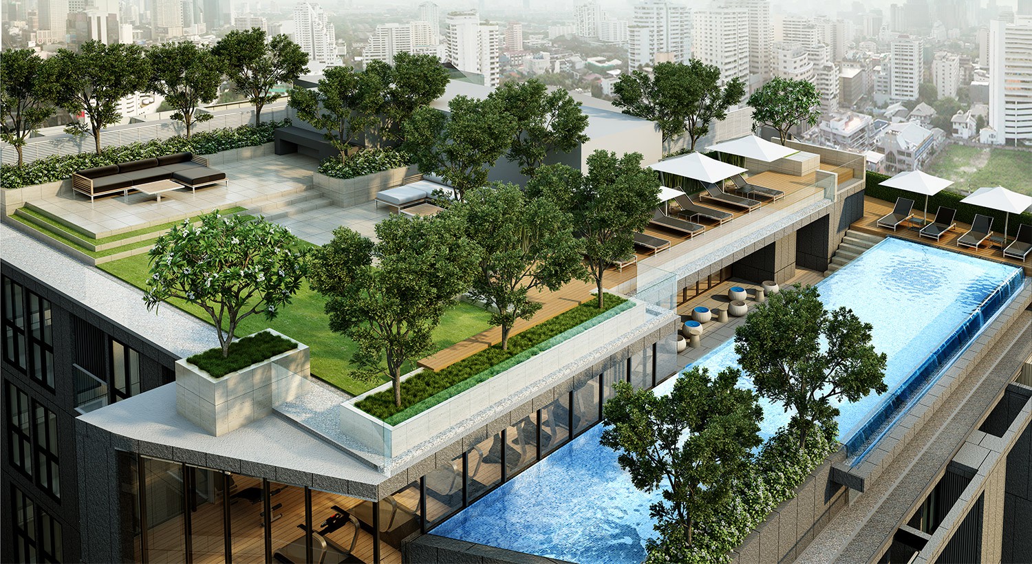 Fusing greenery and modernity, the architecture and common décor of LIV@49 draws its inspiration from natural elements such as wood and stone. The development’s architectural hallmarks manifest themselves through a range of rooftop facilities spread across the two buildings.