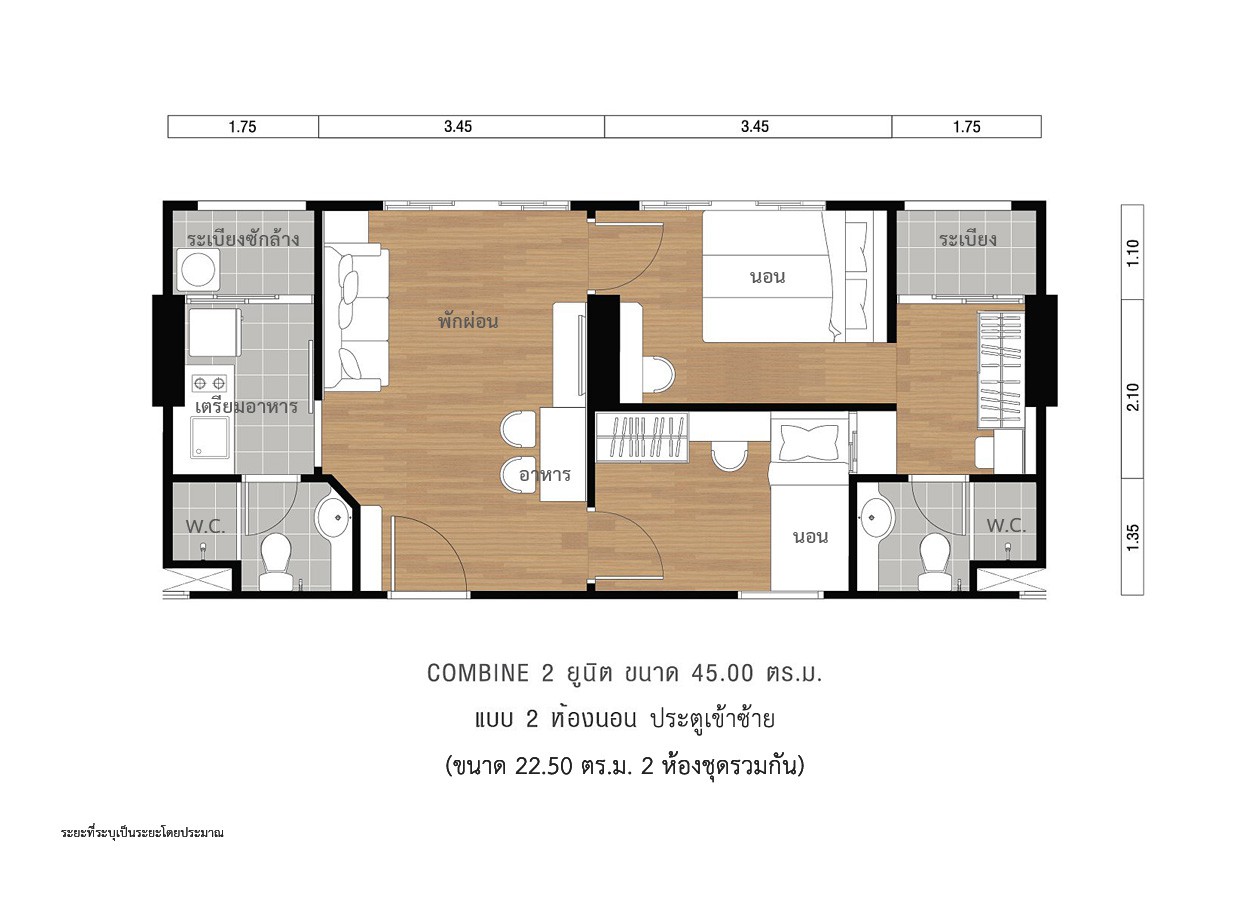 • พื้นที่ใช้สอย (เริ่มต้น): 23 ตารางเมตร