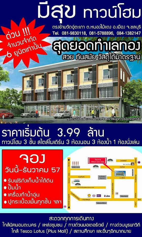 หลุดดาวน์ห้องสุดท้ายครับ.3.79..ล้านบาท.จองทำสัญญารับส่วนลด200,000.ฟรีปั๊มน้ำ.แทงค์น้ำ.ปูกระเบื้องขนาด60×60.ซ.ม.ฟรีน้ำอุ่น.ฟรี.หลังคาที่จอดรถ.ฟรีระบบท่อน้ำยากำจัดปลวกใต้อาคาร..สร้างเสร็จพร้อมอยู่ทำเลดีย่านนิคมอมตะชลบุรีใกล้วัดอู่ตะเภา..ร.ร.ส่วนราชการ.บริษัท.ห้าง.ร้าน.ต่างๆอยู่ในแหล่งชุมชน.สนใจโทร081-5788896.081-9830118….พร้อมเข้าอยู่.สร้างเสร็จก่อนขาย.เชิญชมได้นะนะครับ.