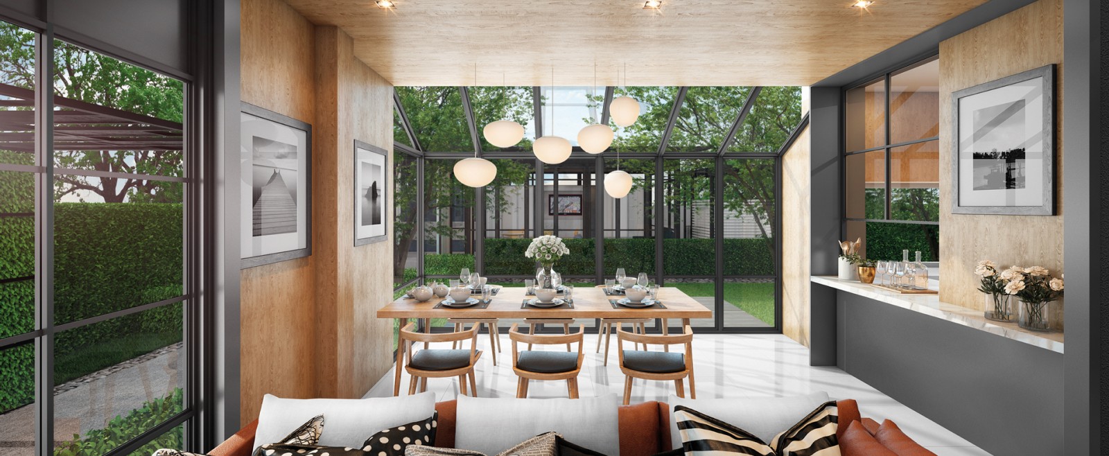 บ้านเดี่ยว อารียา โคโม่ ลาดกระบัง-สุวรรณภูมิ บ้านเดี่ยว 2 ชั้น 4 ห้องนอน 3 ห้องน้ำ 4 ที่จอดรถ บนพื้นที่ความสุขมากถึง 258 ตร.ม. ให้คุณเติมความสุขอีกระดับด้วย Glass House เปลี่ยนผนังบ้านเป็นกระจกใส และสวนสีเขียวรอบโครงการ