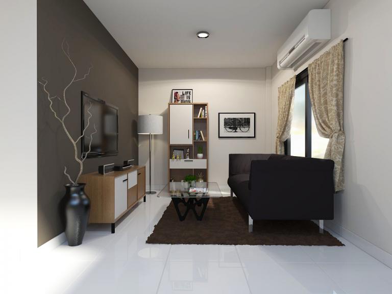 ทาวน์โฮม 1 ชั้น ที่มีขนาดที่ดินให้เลือกตามความต้องการ หน้ากว้าง 4.5 เมตร พื้นที่ใช้สอย 43.6 ตร.ม.