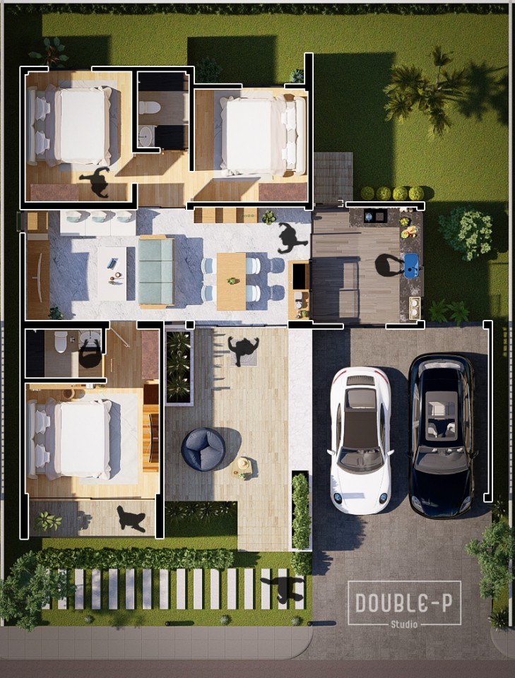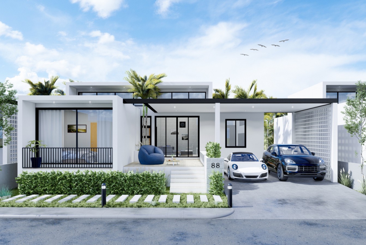 เลิฟวิ่งโอม บ้านเดี่ยว หนึ่งชั้น โมเดิร์นสไตล์ ทรงกล่อง 3 ห้องนอน 2 ห้องน้ำ 2 ที่จอดรถ 1 ห้องครัว 1 ห้องโถงสูง 1 ลานซักล้าง สถานที่ใกล้เคียง สถานศึกษา สถานพยาบาล ห้างสรรพสินค้า ตลาดนัดชุมชน