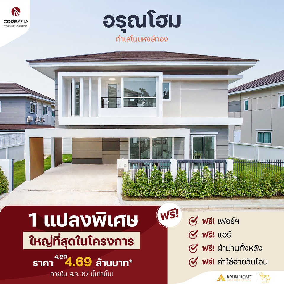 | ซื้อบ้านอรุณโฮมวันนี้ ‼หิ้วกระเป๋าเข้าอยู่ได้เลยส่วนลดกว่า 300,000 บาท |