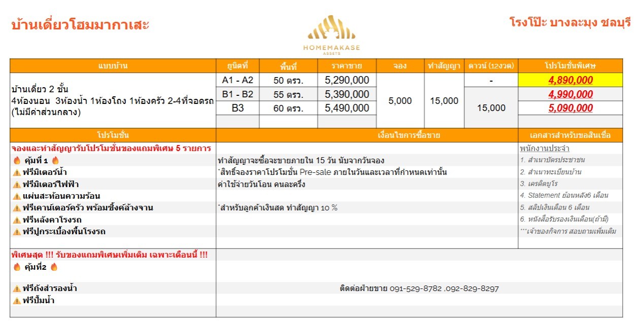 🔥🔥 บนที่ดินที่สูงถึง 50 – 60 ตรว.