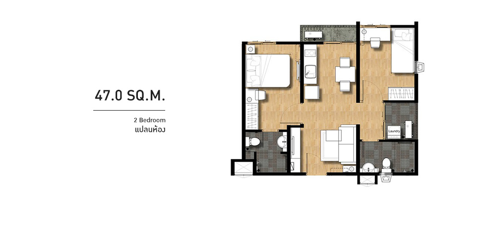พื้นที่ใช้สอย 30 – 47 ตร.ม.