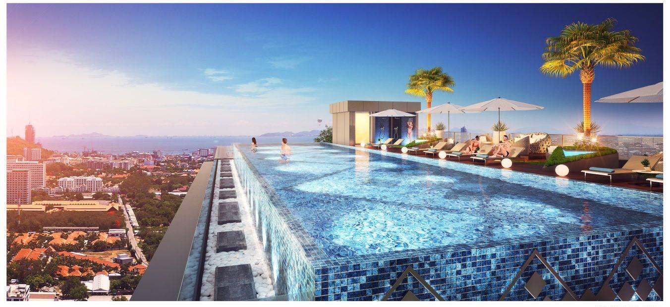 สระว่ายน้ำขนาดใหญ่ แบบอินฟินิตี้ บนชั้น 31 พร้อมสิ่งอำนวยความสะดวก : เกมส์คลับ สปา ซาวน่า ฟิตเนส ร้านอาหาร พื้นที่เพื่อการพาณิชย์ ที่สามารถมองเห็นวิวทะเลโดยรอบ และยังมี พื้นที่สำหรับบริเวณบาร์บีคิว ส่วนพักผ่อนแบบ Zen ล้อมรอบด้วยสวนพฤกษศาสตร์ ในบรรยากาศเขียวชอุ่ม