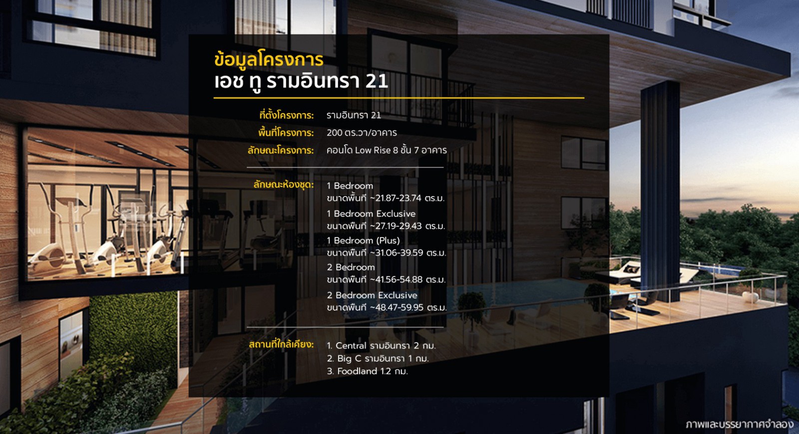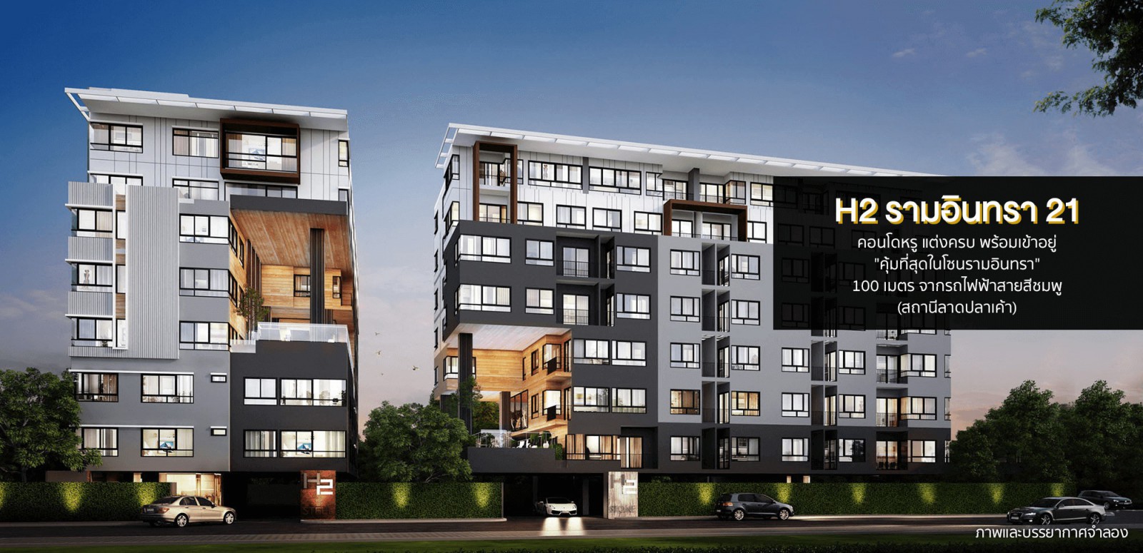 H2 รามอินทรา 21 ถูกออกแบบภายใต้ แนวคิด New Modern Loft ที่เน้นความทันสมัย และสะดวกสบาย ทั้ง Location ที่ใกล้รถไฟฟ้า เพียง 130 เมตร และการออกแบบสถาปัตยกรรมภายนอกที่โดดเด่น เพื่อตอบสนองโจทย์การใช้ชีวิตของคนรุ่นใหม่ โดยเน้นที่การใช้ Space ที่คุ้มค่า