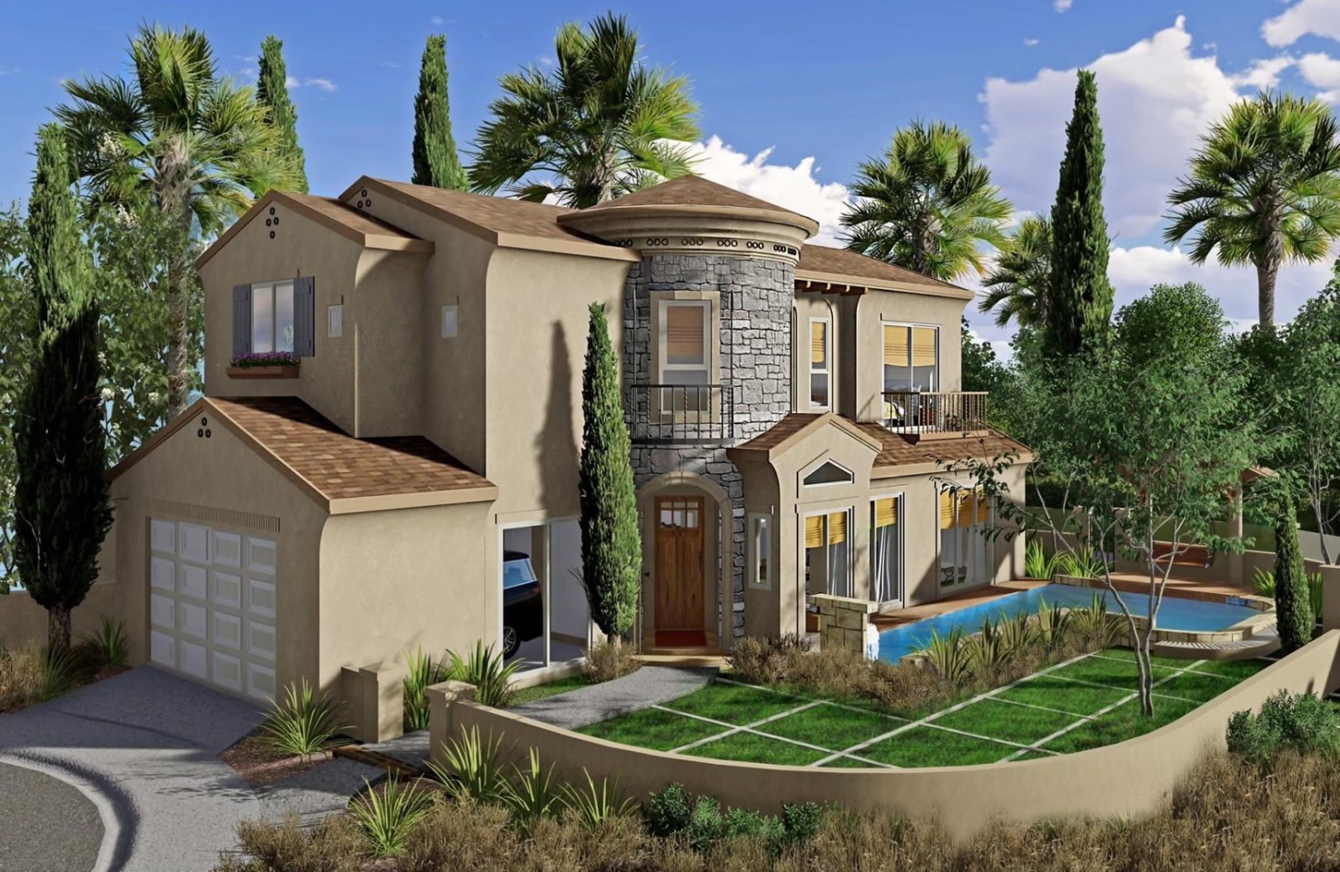 Residence 3 AL - พื้นที่ใช้สอย 269-310 ตร.ม. Tuscan - California Architectural Style หากต้องการบ้านหลังใหญ่ พื้นที่ใช้สอยกว้างขวางและมีความเป็นสัดส่วนที่ลงตัวใช้ประโยชน์ได้ทุกพื้นที่ ขอแนะนำบ้านหลังนี้เลยค่ะ นอกจากมีรูปร่างหน้าตาที่ดูสวยงาม มีความละเอียดทุกมุมมอง ตามสไตล์บ้านเมืองนอกแล้ว ภายในยังได้ออกแบบให้มีความเป็นสัดส่วนที่แยกส่วนของพื้นที่ต่างๆ มีห้องนอนพร้อมห้องน้ำชั้นล่าง มีครัวไทย ครัวฝรั่ง ห้องนั่งเล่น ห้องทานอาหาร มุมอ่านหนังสือ สำหรับห้องนอนใหญ่ มีห้องนั่งเล่นส่วนตัว และห้องน้ำที่มีขนาดใหญ่ อ่างอาบน้ำและwalk-in closet บ้าน3A จะมีสระว่ายน้ำแบบน้ำล้น(infinity pool) พร้อมน้ำตกและศาลา มีทางเดินระหว่างบ้านกับสระให้นั่งเล่นริมน้ำ