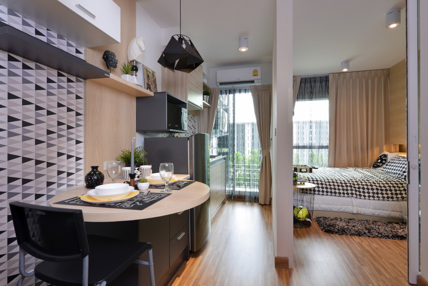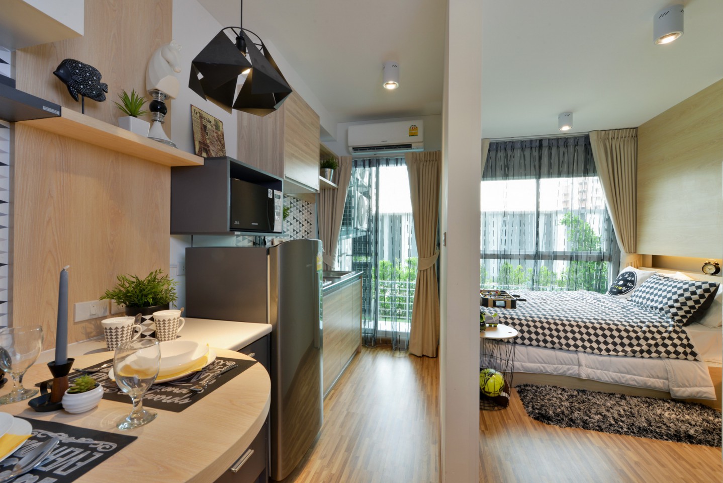 - Type A : 1 ห้องนอน 1 ห้องน้ำ พื้นที่นั่งเล่น ส่วนเตรียมอาหาร และระเบียง