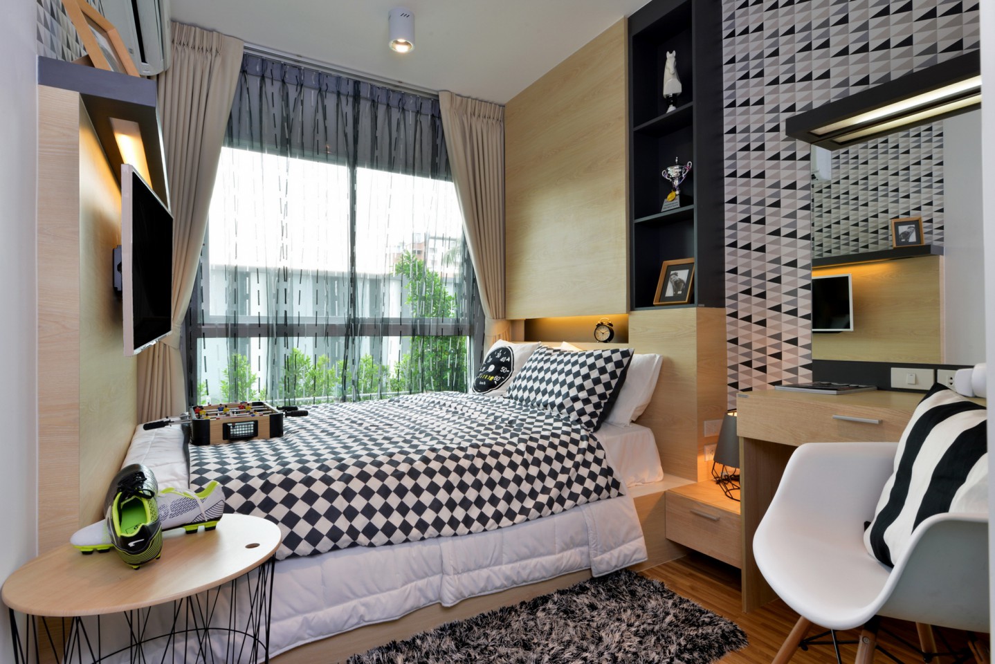 - Type B : 1 ห้องนอน 1 ห้องน้ำ พื้นที่นั่งเล่น ส่วนเตรียมอาหาร และระเบียง
