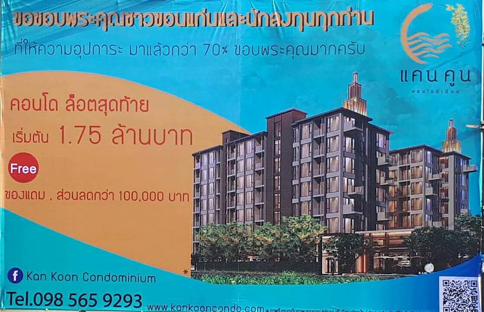 โครงการ KanKoon condominium ขอขอบพระคุณชาวขอนแก่นและนักลงทุนทุกท่าน ที่ให้ความอุปการะ มาแล้วกว่า 70%