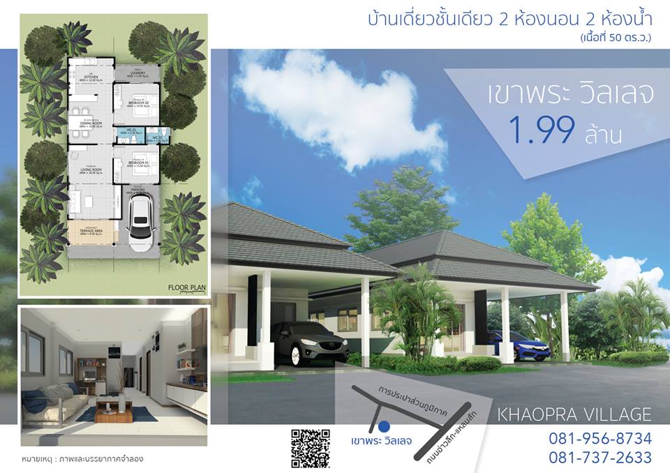 เขาพระ วิลเลจ บ้านเดี่ยว 2 ห้องนอน 2 ห้องน้ำ เนื้อที่ 50 ตร.ว. ราคาเพียง 1.99 ( อ.อ่าวลึก จ.กระบี่ )