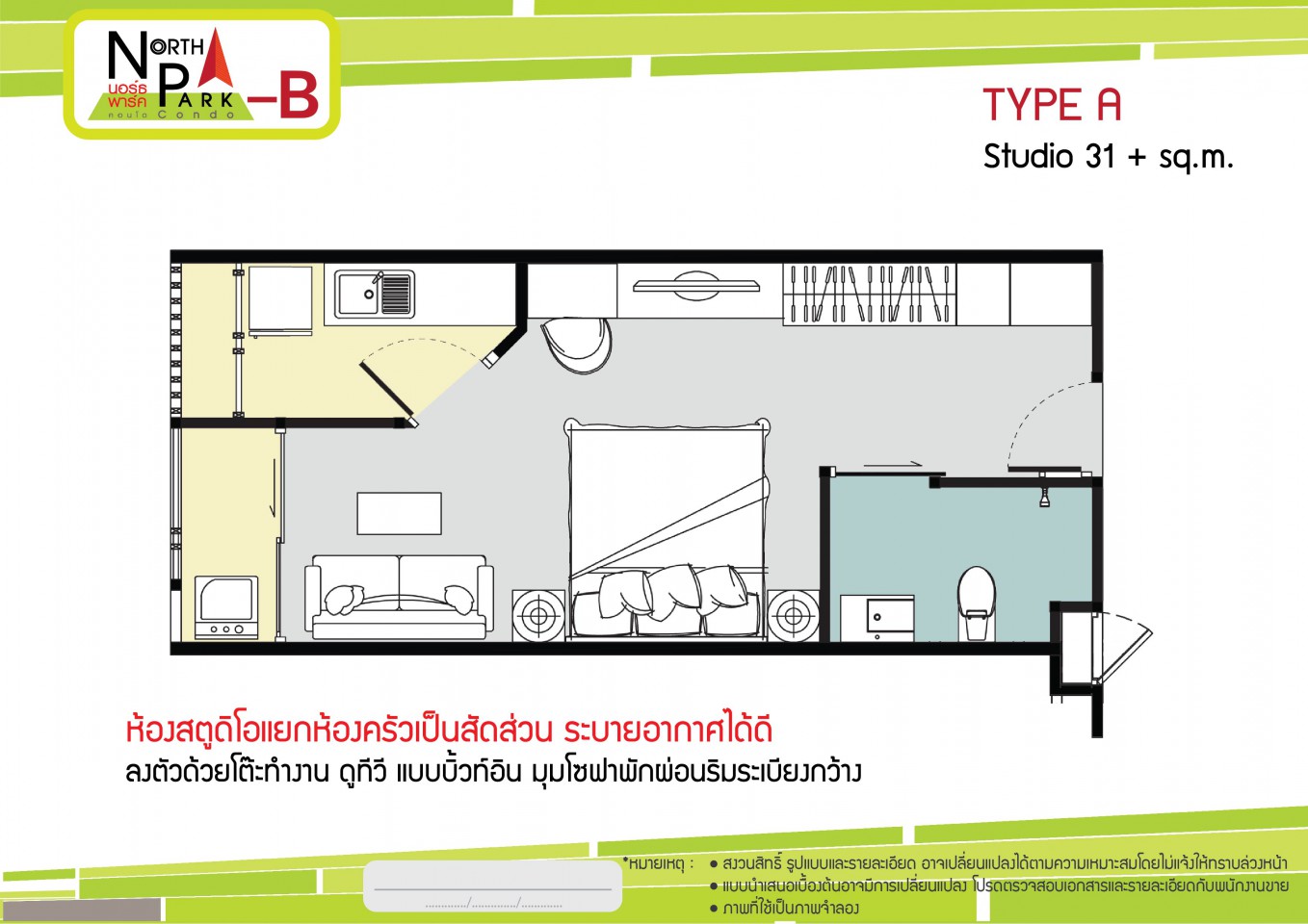 • พื้นที่ใช้สอย (เริ่มต้น): 31 ตารางเมตร