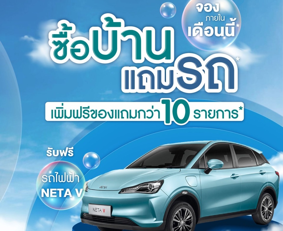 บ้านมือ1 ว้าววว ซื้อบ้านแถมรถ! บ้านพร้อมเฟอร์ พร้อมอยู่ หลังเดียวบนทำเลดีที่สุด ใกล้คลับเฮาส์ 🎉พิเศษสำหรับจองภายในเดือนนี้ รับไปเลยรถไฟฟ้า NETA V และของแถมกว่า 10 รายการ ✨ในราคาเพียง 𝟓.𝟗𝟗 ลบ.* เท่านั้น!