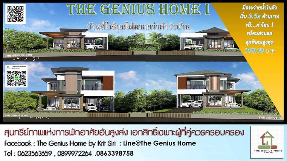 ในวันสุดพิเศษนี้ The Genius Home มีโปรสุดพิเศษมาให้ กับบ้านสุดพิเศษ สไตร์ โมเดิร์น และ โมเดิร์น ทรอปิคอล (Modern and Modern Tropical style) ตั้งแต่ 3 ห้องนอน 3 ห้องน้ำ 1 ครัวยุโรป1 ห้องโถงใหญ่เชื่อมกับสระว่ายน้ำ ไปจนถึง บ้านไฮไลท์ 4 ห้องนอน 5 ห้องน้ำ 1 ครัวยุโรบ 2 ห้องโถงใหญ่โถงชั้่นล่างเชื่อมกับสระว่ายน้ำในตัวบ้านท่านสามารถปรับเปลี่ยนพื้นที่ห้องโถงกับสระว่ายน้ำได้ตามสไตร์ของท่านเพื่อทำกิจกรรมได้หลากหลาย
