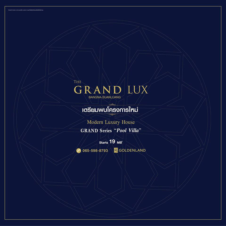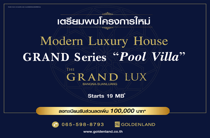 บ้านเดี่ยวแบบใหม่ ดีไซน์สุดหรู Modern Luxury House GRAND Series Pool Villa เริ่ม 19 ล้าน* ลงทะเบียนรับส่วนลดเพิ่ม 100,000 บาท* ทำเลศักยภาพ ติดถนนใหญ่ ใกล้เมกะบางนา+สุวรรณภูมิ เร็วๆนี้