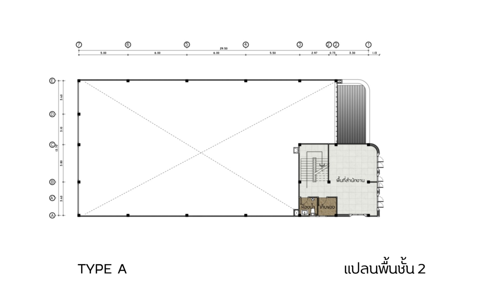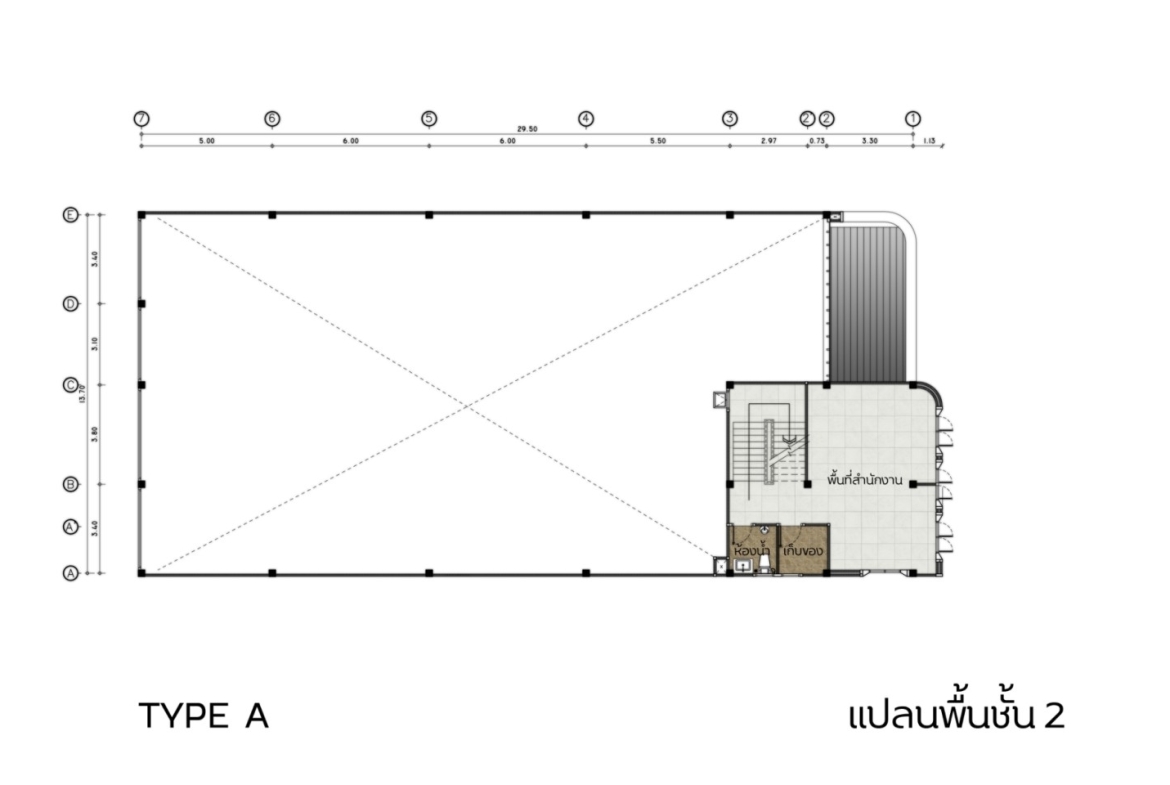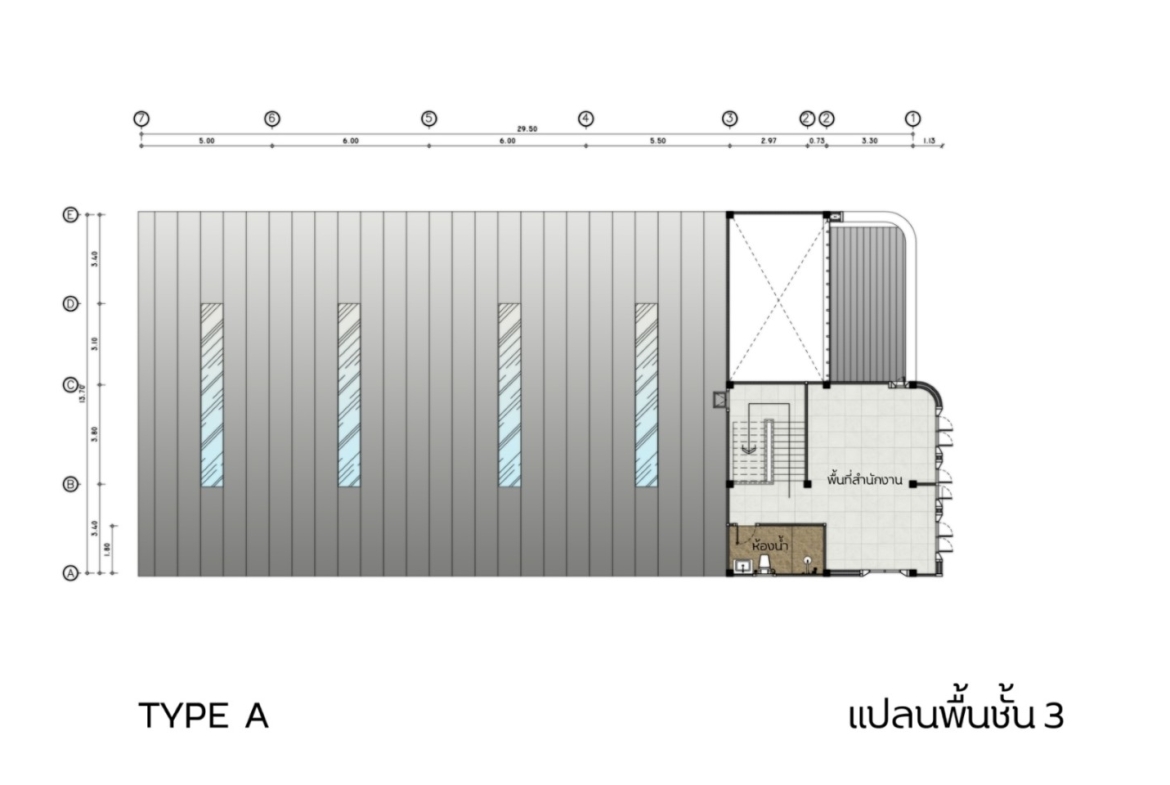 **พื้นที่ใช้สอย อาคารสำนักงาน 3 ชั้น 4 ห้องน้ำ**